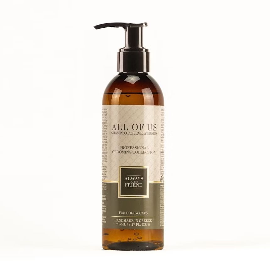 Profesjonalny szampon dla zwierząt All Of Us jest zaprojektowany dla wszystkich ras i łączy naturalne składniki, aby zapewnić wyjątkowe rezultaty.