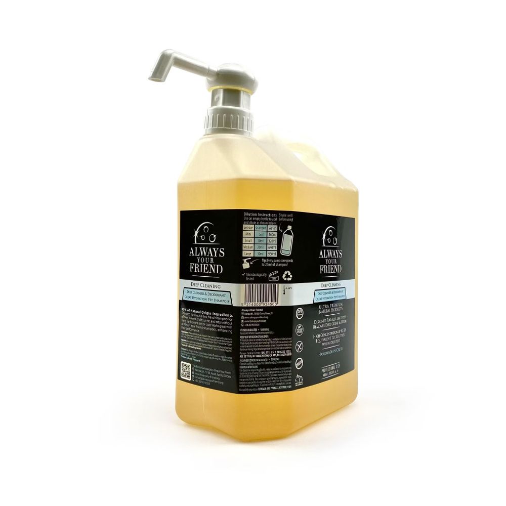 Profesjonalny szampon dogłębnie oczyszczający, stworzony do skutecznego usuwania brudu i nieprzyjemnych zapachów bez ryzyka uszkodzenia sierści. Doskonale komponuje się z wszystkimi szamponami Always Your Friend, potęgując efekty ich działania.