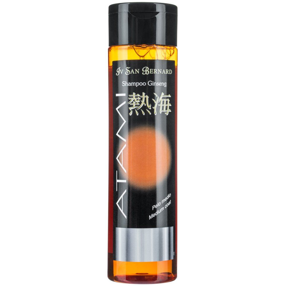 Iv San Bernard Atami Ginseng Shampoo to antyoksydacyjny szampon z wyciągiem z żeń-szenia przeznaczony dla psów i kotów o średniej szacie. Działa tonizująco i wyrównuje metabolizm włosów. Dzięki działaniu witalizującemu odżywia skórę.