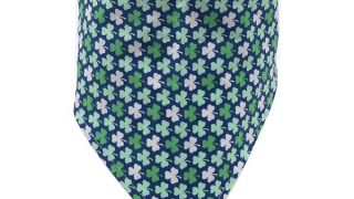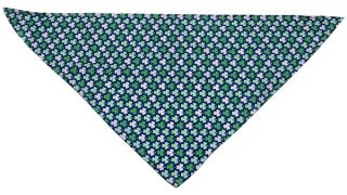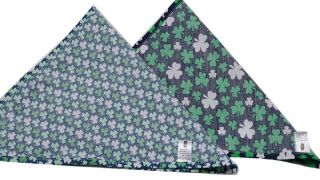 Bandamka dla psa w kolorze zielonym wiązana na szyi. Zielone koniczyny na granatowym tle. Przyjemny miękki materiał, idealny na lato.