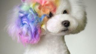Możesz nadmuchiwać kolor na psiaka bądź użyć gotowych szablonów do tatuażu.