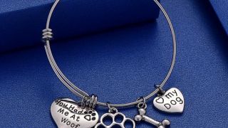 Piękna bransoletka na rękę z ozdobą serce, łapka, kostka dla psa. Piękny dodatek dla osoby kochającej psy. Ozdoba, która będzie pasować i na co dzień i na inne okazje.