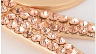 Breloczek do kluczy, zawieszka do torebki w kształcie nożyczek z ozdobnymi kamieniami w 3 kolorach cyrkonii: złotym, białym oraz różowym.