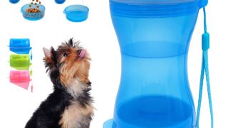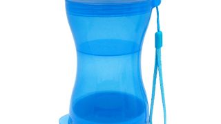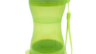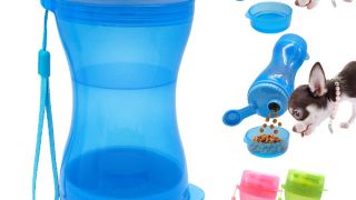 Butelka posiada dwie osobne przegrody, dzięki którym możesz zabrać na spacer, pieszą wędrówkę dla psa wodę oraz smakołyki bądź karmę w jednym pojemniku.