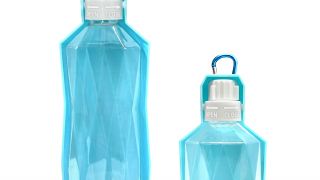 Posiada karabińczyk, którym można butelkę przypiąć do np. plecaka.