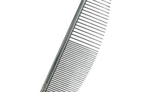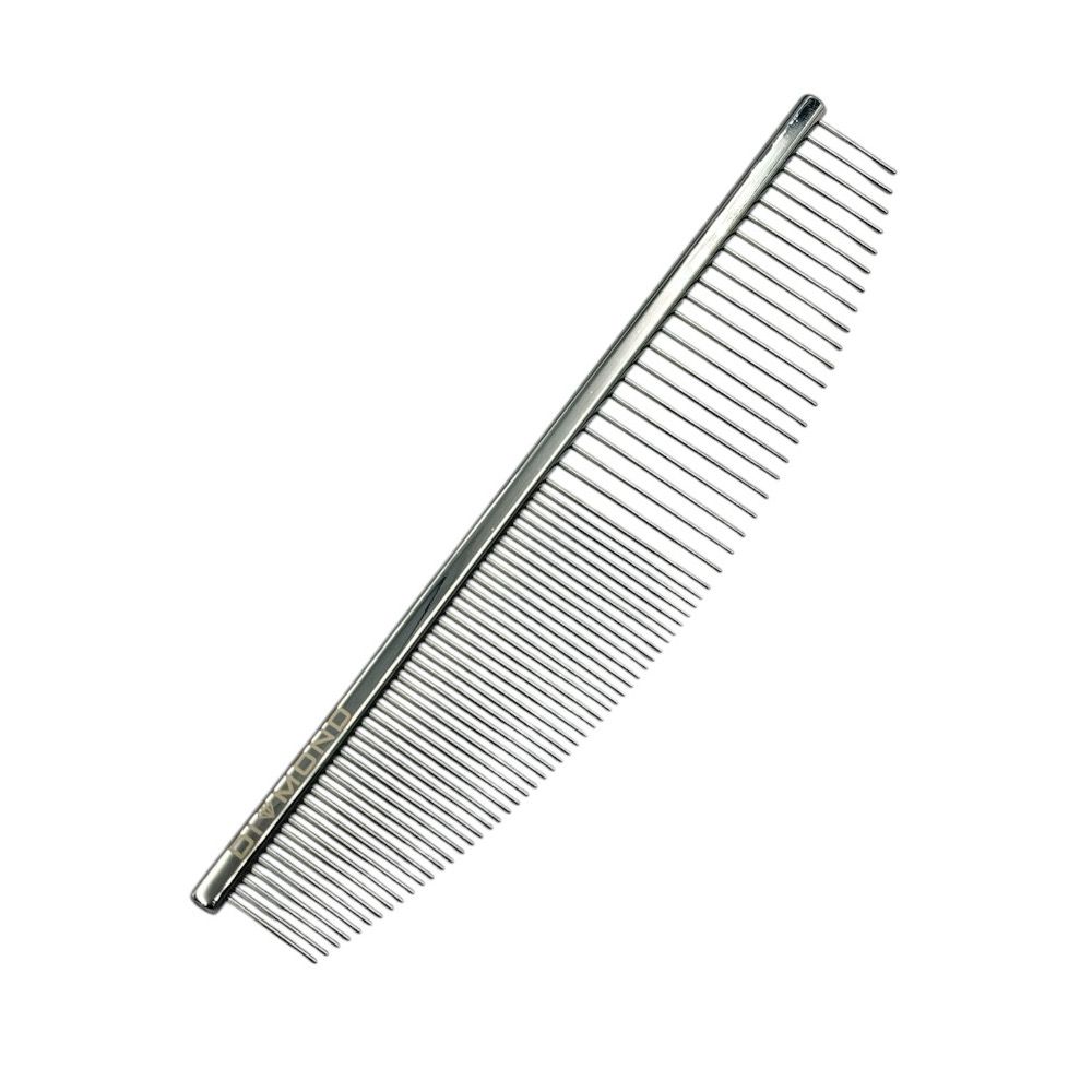 Metalowy grzebień Półksiężyc 50/50 to niezastąpione narzędzie dla groomerów i właścicieli psów, które doskonale sprawdza się podczas pielęgnacji małych, trudno dostępnych miejsc, takich jak pyszczek czy podbródek.