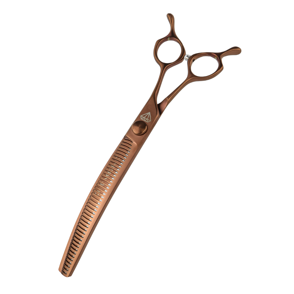 Profesjonalne degażówki groomerskie Diamond Scissors 7,5” to narzędzie stworzone do precyzyjnego wykańczania fryzur i uzyskiwania naturalnych przejść w sierści.