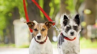 Rozdzielacz, który stanowi idealną pomoc do prowadzenia dwóch psów.