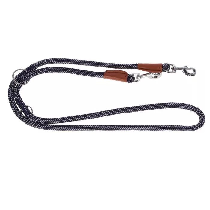 Wewnętrzna lina polipropylenowa zapewnia wytrzymałość i odporność na rozdarcia, podczas gdy akcenty ze sztucznej skóry nadają smyczy elegancki, premium wygląd. Chromowane okucia gwarantują bezpieczne połączenie z obrożą i oferują długotrwałą odporność na korozję.