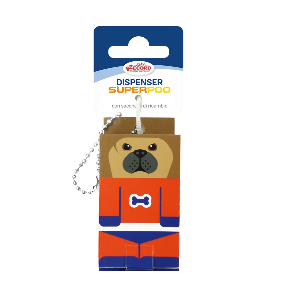 Zabawny, lekki i wielokrotnego użytku kartonowy dozownik z metalowym karabinkiem do zawieszania na smyczy. Dostępny w różnych motywach. Zawiera rolkę 15 torebek.