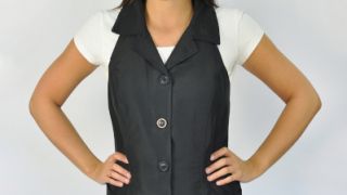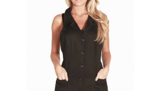 Posiada regulowany pasek na szyi (3 metalowe napy) oraz dwie kieszenie, które posiadają zamek ułatwiający ich czyszczenie z włosów. Zapinany z przodu na guziki. Materiał cienki i przewiewny. Jest to poliester.
