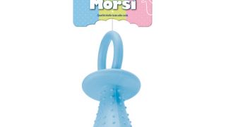 Smoczek jest z wypustkami, przy zabawie pies masuje sobie dziąsła i czyści zęby.