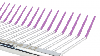 60 metalowych pinów zapewnia optymalną gęstość pracy – to narzędzie stworzone do precyzyjnego wykończenia i budowania struktury fryzury. Smukła, wyważona konstrukcja dobrze leży w dłoni i pozwala pracować bez zmęczenia nawet przy dłuższych sesjach w salonie.
