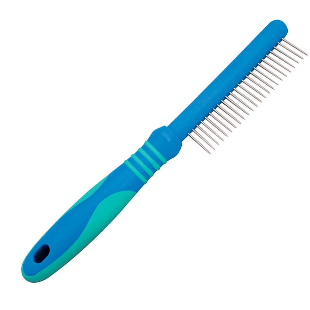 Grzebień posiada ergonomiczny uchwyt zapobiegający ślizganiu się w trakcie czesania.