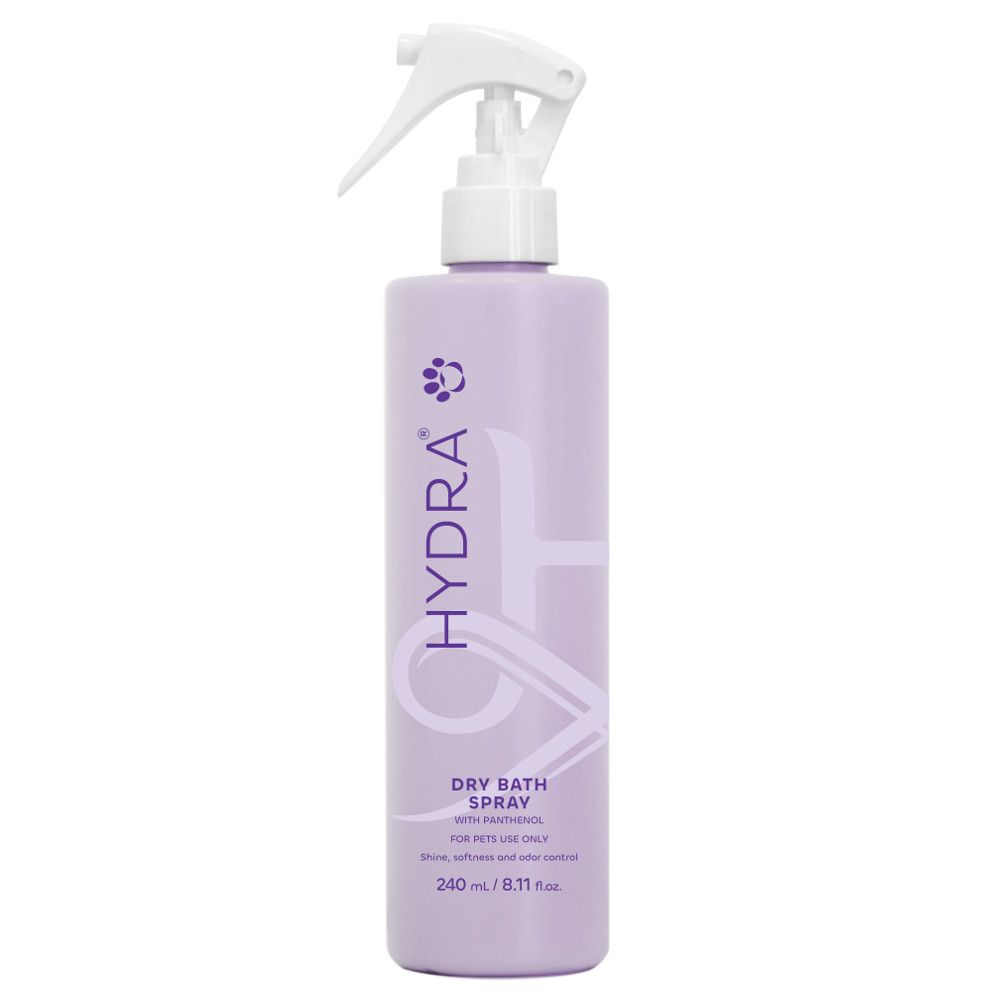 Delikatny, zbilansowany pod względem pH spray czyszczący i dezodoryzujący sierść. Spray Hydra Dry Bath został stworzony, aby usuwać nieprzyjemne zapachy, ułatwiać rozczesywanie bez stresu, zapewniać przyjemną miękkość w dotyku i promienny blask. Naturalne substancje aktywne neutralizujące zapachy - pomagają eliminować nieprzyjemne zapachy, zapewniając świeżo pachnącą sierść.