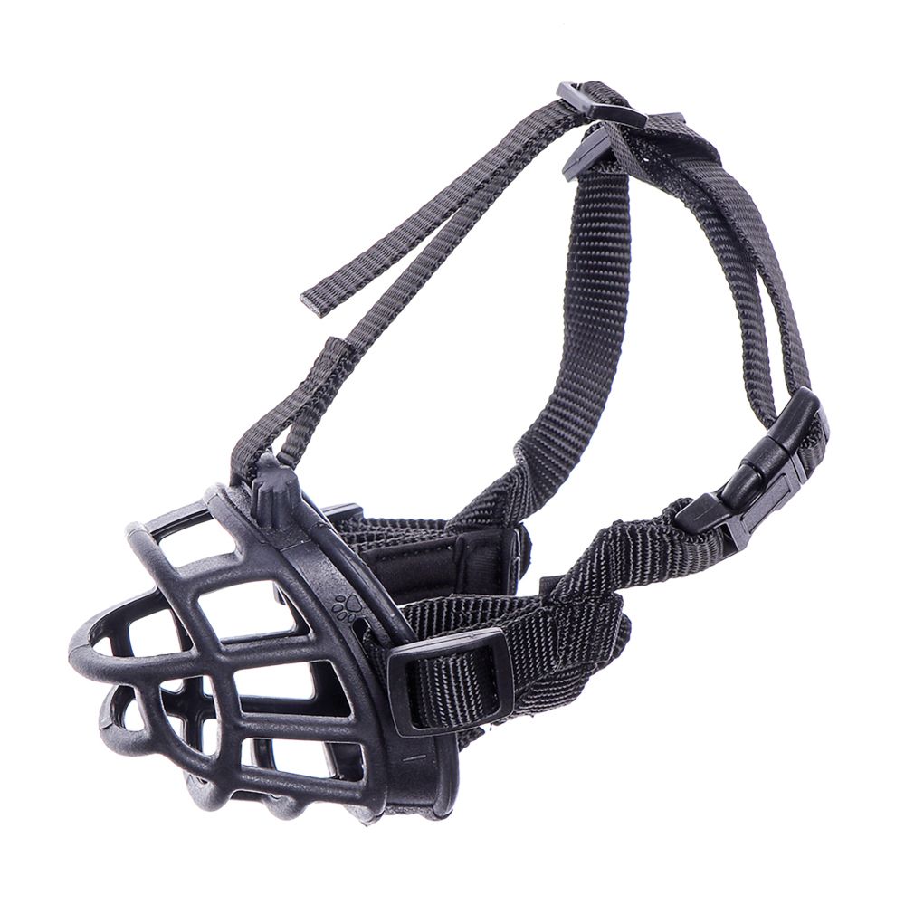 Kaganiec dla psa wykonany z silikonu, w kolorze czarnym z nylonowym paskiem.