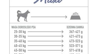 TABELA KARMIENIA: Zobacz tabelę. Podane ilości w tabeli są wytycznymi i powinny być dostosowane do indywidualnych potrzeb psa.