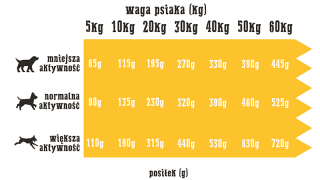 - świeży olej z łososia to bogactwo kwasów tłuszczowych Omega 3 EPA i DHA, cennych dla sierści i skóry Twojego psa, dodawany próżniowo na samym końcu