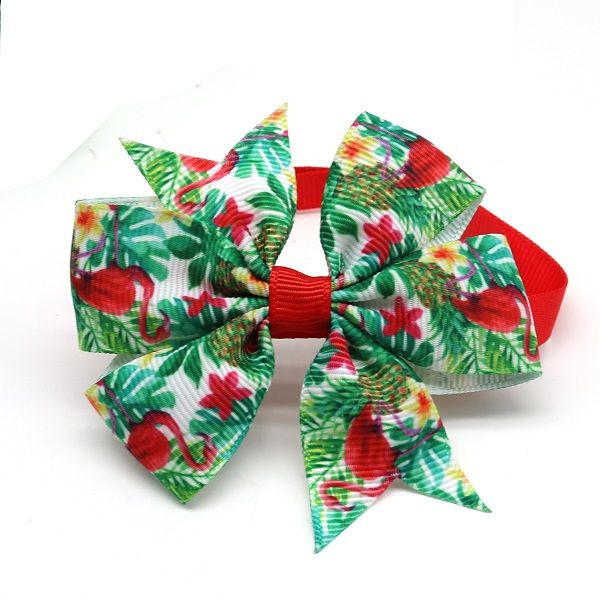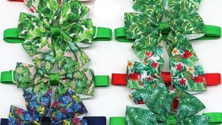 Wakacyjna ozdoba dla Twojego pupila. Komplet trzech kokard na tasiemce w różnych wzorach. Żywe, intensywne kolory doskonale wyglądają na psie w słoneczne dni. Piękne motywy: liście, flamingi i paprocie.