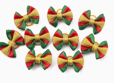 Kokardka w kolorach czerwieni, złota i zieleni. Będzie stanowić idealną ozdobę na święta dla Twojego pupila. Posiada silikonową gumeczkę do mocownia na kucyku. Sprzedawana 1 sztuka.