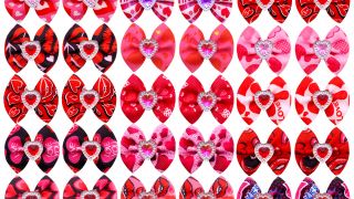 Dodaj swojemu pupilowi wyjątkowego uroku dzięki ślicznym kokardkom w kolorach różowych z motywem serduszek, ust i napisem "love". Każda kokardka ozdobiona jest kryształkiem w kształcie serduszka, co sprawia, że Twój pies wyróżni się nietuzinkową ozdobą.