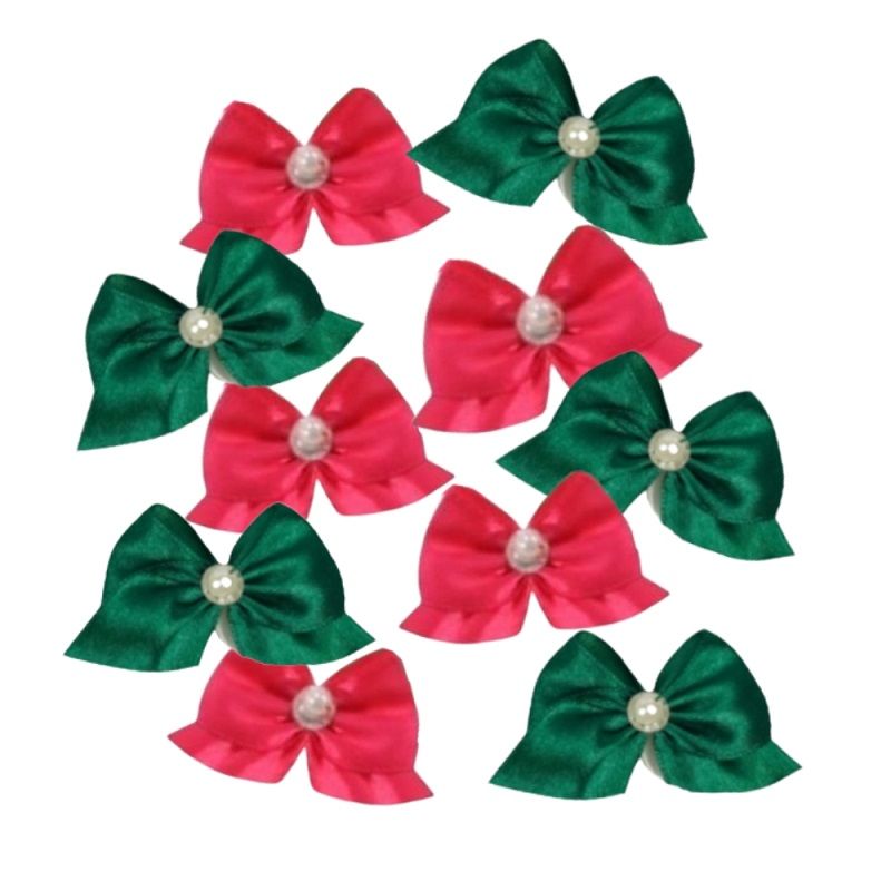 Kokardki satynowe różowe i zielone 10 sztuk