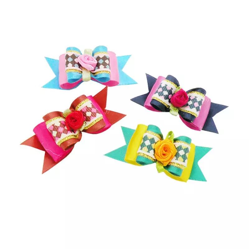 Kokardki z kwiatkiem 4 sztuki mix kolorów