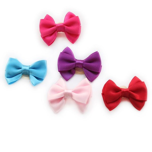Pięć satynowych kokardek w różnych kolorach. Kokardki przymocowane do silikonowej gumki. Komplet zawiera kokardkę w kolorze jasnoróżowym, fioletowym, niebieskim, czerwonym i fuksji. Ozdoba pięknie prezentuje się na każdym psie.
