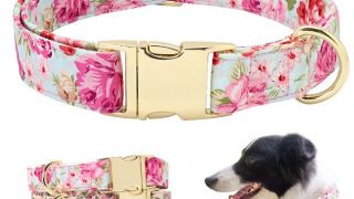 Komplet smycz i obroża kwiaty M