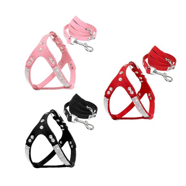 Komplet smycz i szelki z cyrkoniami rozmiar S