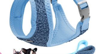 W komplecie smycz w tym samym kolorze, zapinana na karabińczyk. Rączka smyczy została obszyta materiałem z którego wykonane są szelki, dzięki temu jest bardzo przyjemna w dotyku dla właściciela pupila.
