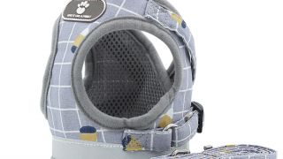 Smycz wykonana z tego samego materiału co szelki, dopasowana kolorystycznie. Solidny, metalowy karabińczyk w srebrnym kolorze.