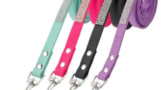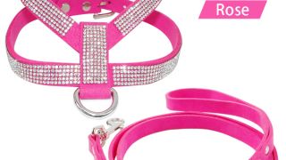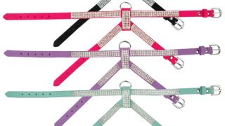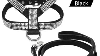 Komplet dla psa smycz i szelki z kryształkami.