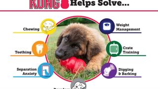 KONG jest dostępny w różnych rozmiarach, odpowiednich dla małych i dużych psów.