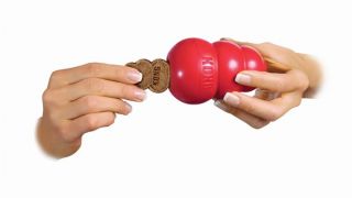 KONG jest dostępny w różnych rozmiarach, odpowiednich dla małych i dużych psów.