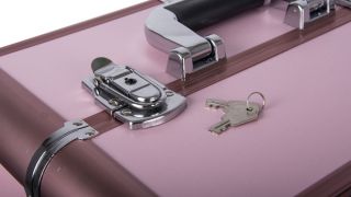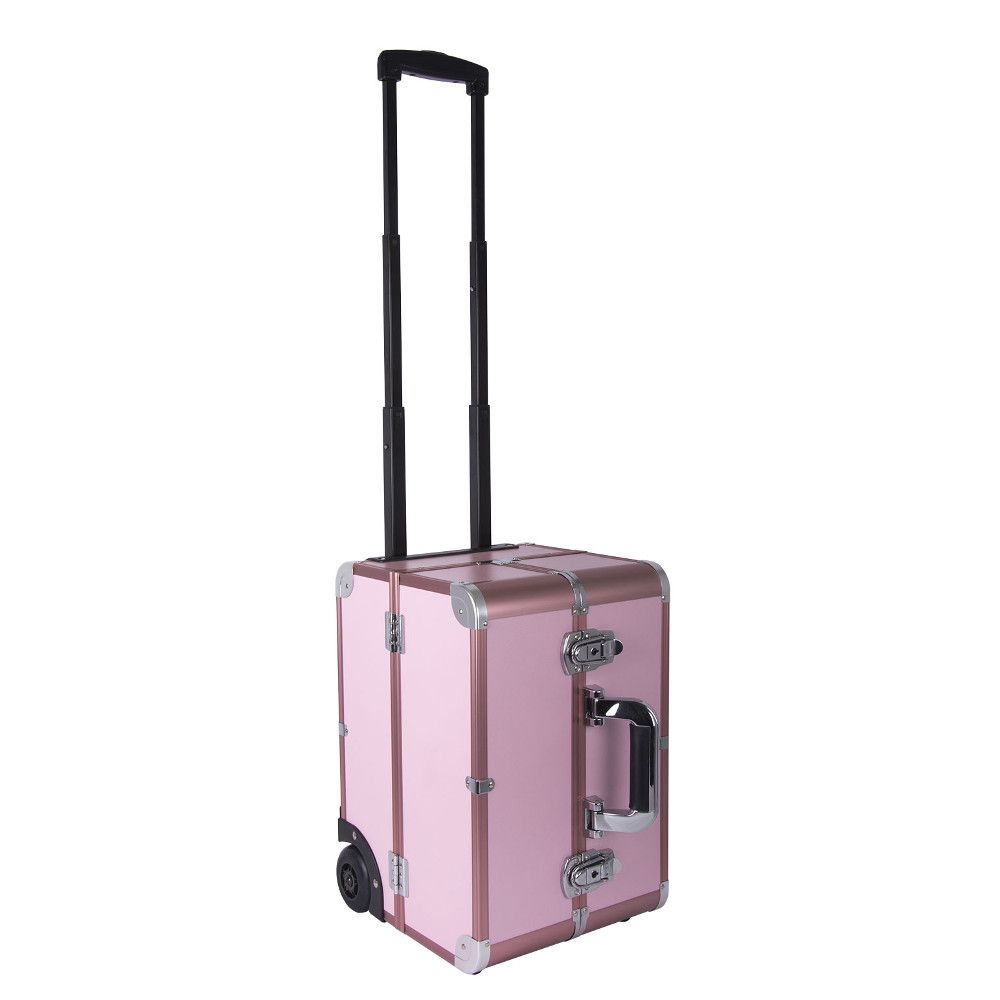 Wykończona w pastelowym różu, ta atrakcyjna walizka posiada wygodny uchwyt do przenoszenia i 2 zamki z kluczami.