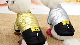 Kurtka wykonana z miękkiego materiału, ocieplana idealna na chłodne dni. Wewnątrz wiatroodporny materiał, na zewnątrz ubranko w pięknym srebrno-czarnym albo w złoto-czarnym kolorze. Lewa strona w kolorze czarnym.