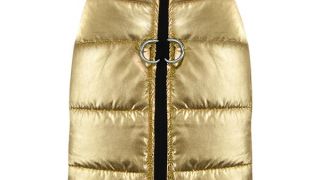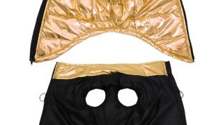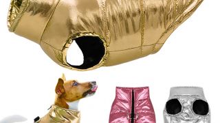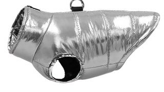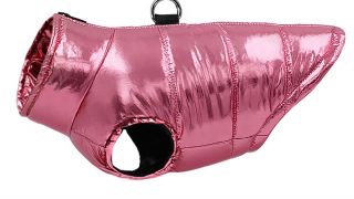 Kurtka wykonana z miękkiego, błyszczącego materiału, ocieplana idealna na chłodne dni. Wewnątrz wiatroodporny materiał, na zewnątrz ubranko w pięknym błyszczącym kolorze. Lewa strona w kolorze czarnym. Posiada metalowe pół kółko na zapięcie smyczy.