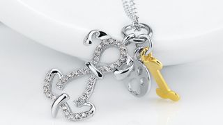 Piękny łańcuszek z zawieszką pieska z cyrkoniami.