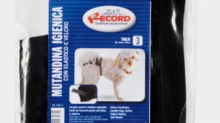 Majtki dla psa na cieczkę z materiału, z regulowanym paskiem.