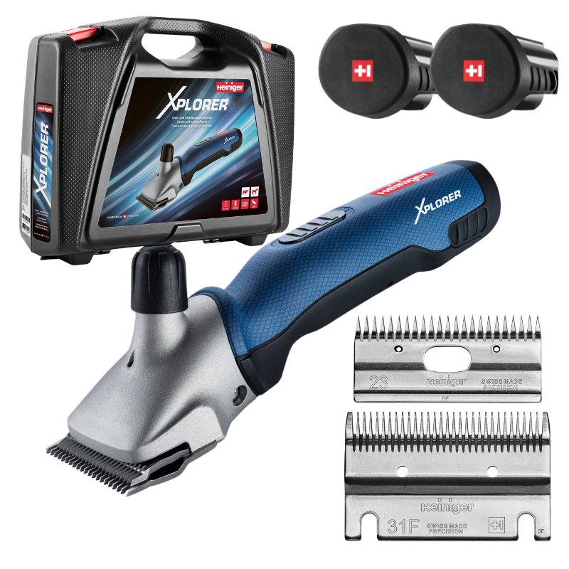 Maszynka Xplorer firmy Heiniger jest to bezprzewodowa maszynka do strzyżenia koni, bydła, dużych psów i innych zwierząt. Maszynka którą można szybko i łatwo strzyc nawet w bardzo trudnych warunkach. Dzięki 2 bateriom można wykonywać prace tam gdzie nie ma źródła zasilania.
