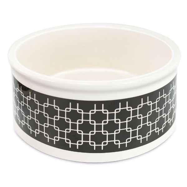 Miska w kolorze kremowym z czarnym ozdobnym paskiem.