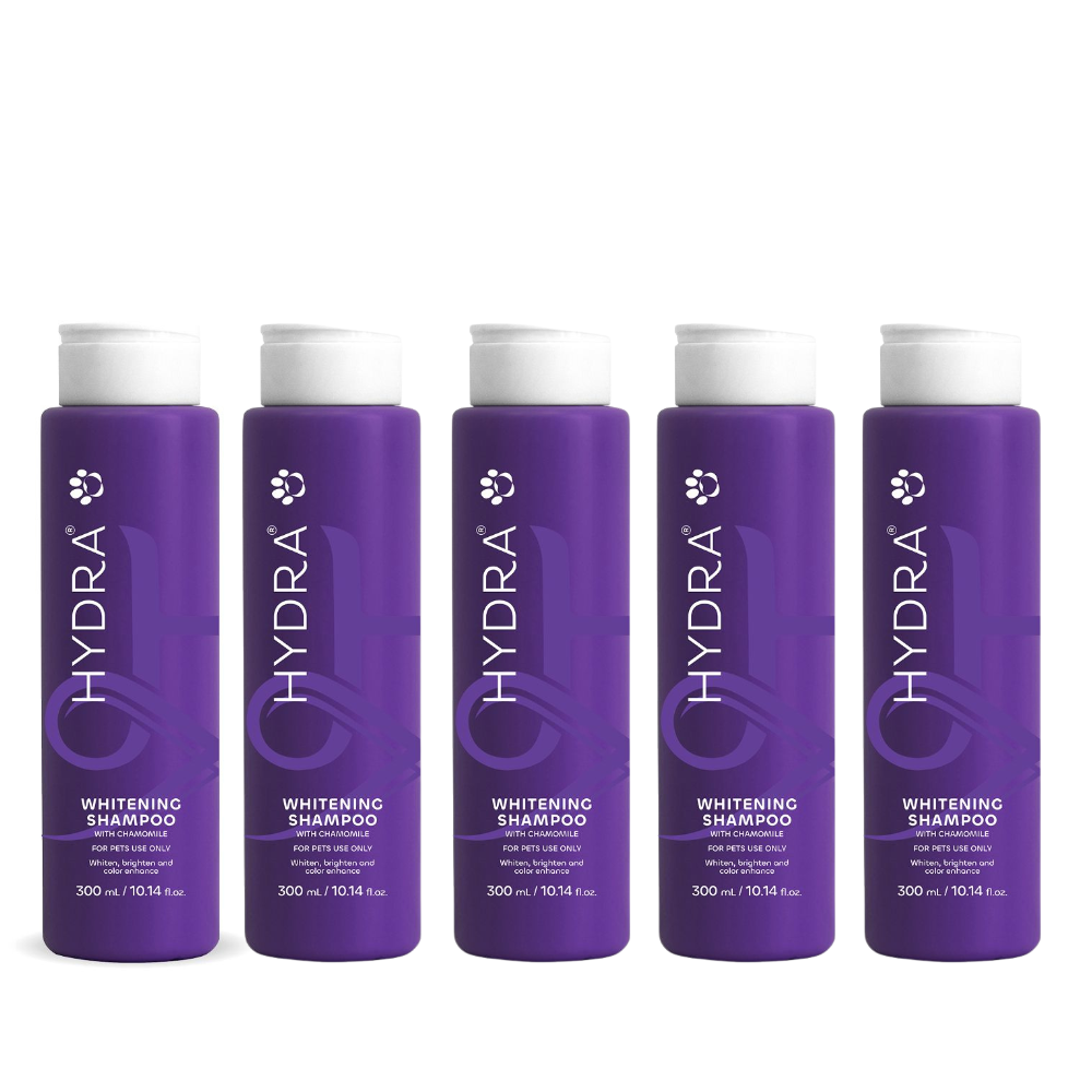 Zwiększający jasność, zbilansowany pod względem pH szampon dla zwierząt. Ultra-rozjaśniająca i przyjazna dla skóry piana szamponu Hydra Whitening została stworzona, aby oczyścić, rozjaśnić i dezodoryzować sierść pupila, pomagając jednocześnie poprawić wygląd sierści poprzez neutralizację żółtych, czerwonych i pomarańczowych tonów dla jeszcze bardziej promiennego blasku. Ekstrakt z rumianku - naturalnie rozjaśnia i wzmacnia kolor sierści.