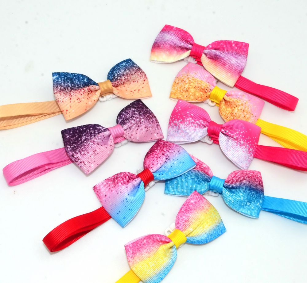 Zestaw pięciu kolorowych muszek na tasiemce dla psa