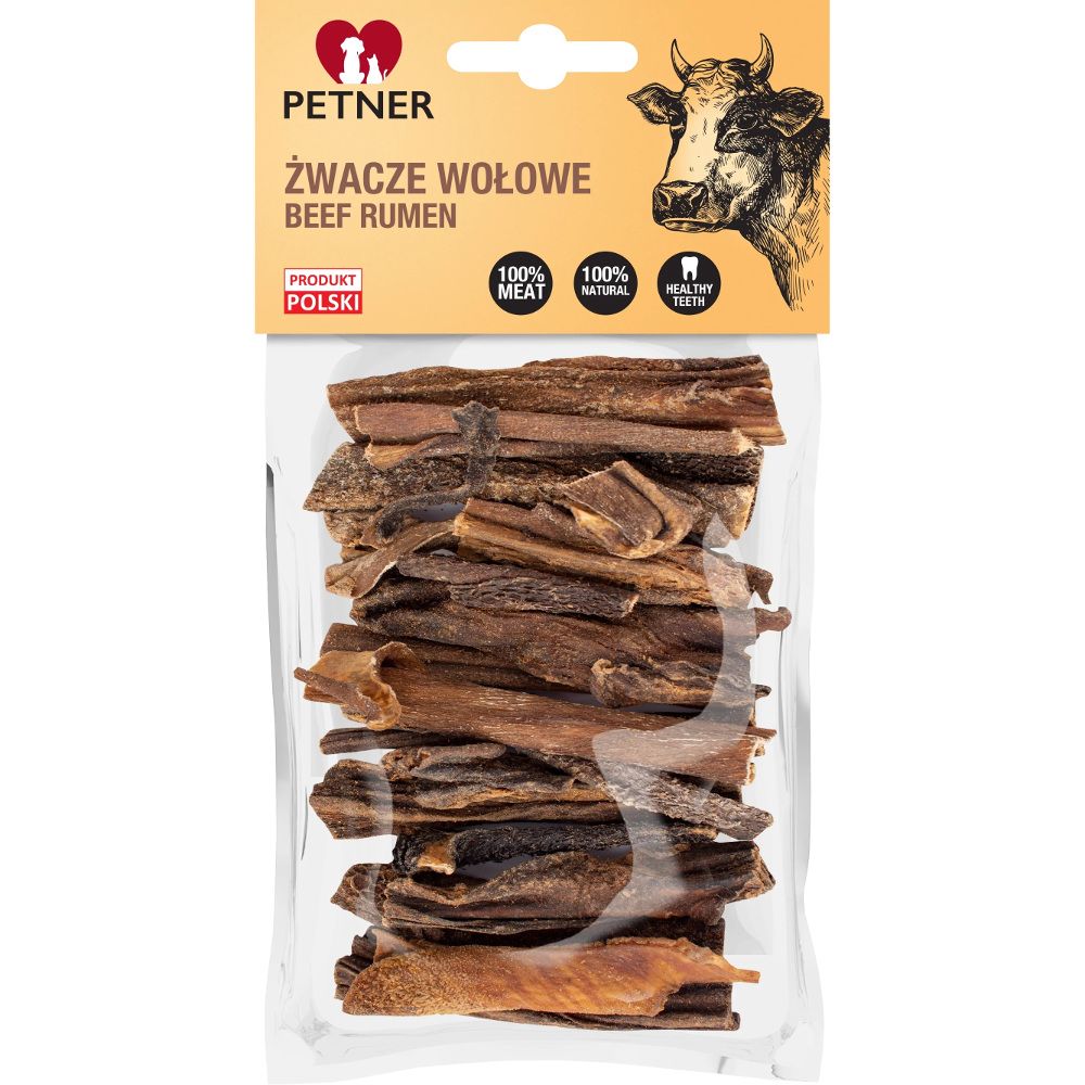 Żwacze wołowe Petner to bogaty wartościowe kultury bakterii gryzak wspierający procesy trawienne, mający dobry wpływ na apetyt oraz stymulujący florę jelitową, zapobiegając nawracającym biegunkom. Ogranicza podjadanie przez psa trawy i nieczystości na spacerach.