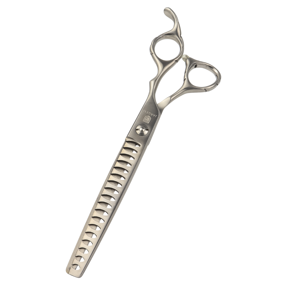 Profesjonalne chunkersy Jargem 7” to solidne nożyczki stworzone do intensywnego cieniowania oraz pracy na grubszym włosie. Dzięki 18 szerokim zębom umożliwiają wyraźne zbieranie objętości i szybkie modelowanie fryzury, zachowując naturalny efekt wykończenia.