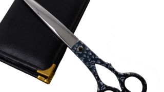 Nożyczki zapakowane w praktycznym, skóropodobnym futerale.