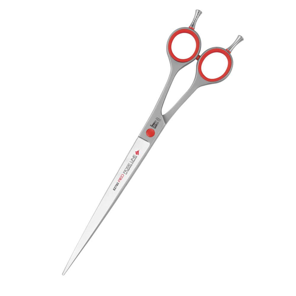 Wykonane z hartowanej lodem stali nierdzewnej dla najwyższej trwałości i zostały mikroząbkowane, aby przytrzymywać włosy podczas cięcia, umożliwiając lepszą precyzję podczas pielęgnacji. Nożyczki są bardzo lekkie, dzięki czemu ryzyko zmęczenia dłoni jest mniejsze niż w przypadku cięższych nożyczek. Nożyczki są wyposażone w dwie wyjmowane podpórki na palce i wyjmowane czerwone wkładki na palce, które poprawiają chwyt i komfort podczas pielęgnacji. Nożyczki są wyposażone w pasującą czerwoną śrubę napinającą.