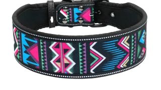 Nylonowa obroża dla psa podszyta miękkim materiałem doskonale sprawdzi się dla psów ras średnich i większych. Solidne zapięcie na metalową klamrę z kilku stopniową regulacją pozwala na dopasowanie obroży tak by pies nie wyswobodził się na spacerze. Bezpieczeństwo zwiększają również przeszycia odblaskową nicią dającą widoczność po zmroku. Ciekawe i intensywne barwy.