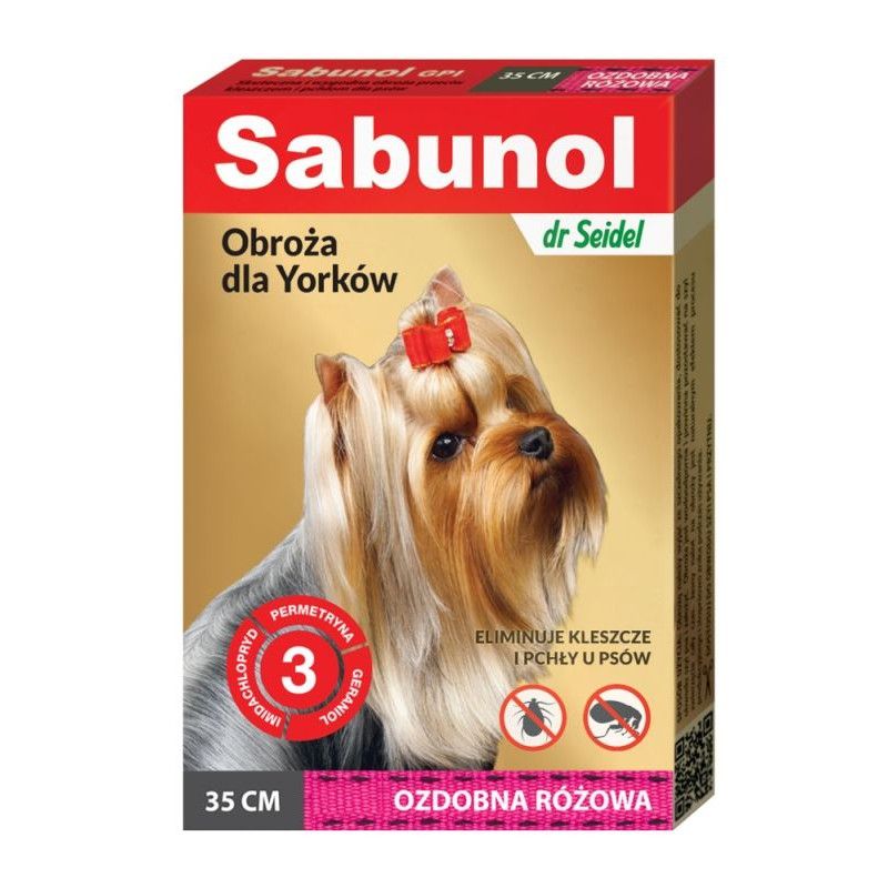 Sabunol różowa obroża przeciw pchłom i kleszczom dla Yorków i małych psów 35 cm